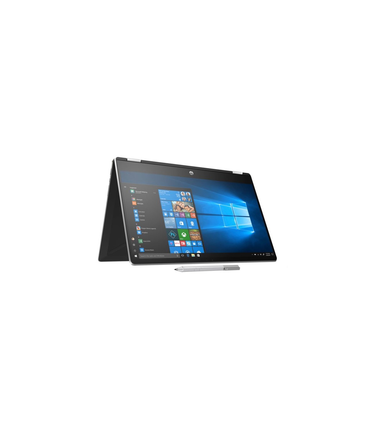 کیبورد و بدنه و شاسی همه به رنگ نقره ای در آمده اند، البته کیبورد مشکی رنگ آن نیز موجود می باشد و انتخاب به سلیقه ی خریدار می باشد. قابلیت انعطاف پذیری بالای بدنه ی لپ تاپ امکان چرخش 360 درجه و خم شدن بدنه ی لپ تاپ را فراهم آورده ، تا جایی که می توان صفحه نمایش را خم کرد و آن را به بدنه ی پشتی لپ تاپ چسباند و به این صورت در حالت جمع و جور از آن استفاده کرد. قلمی به همراه لپ تاپ اچ پی Pavilion x360 ارائه شده است، این قلم بر روی صفحه نمایش لپ تاپ با حساسیت بالا کار می کند و کارآیی راحت و ساده ای را برایتان به ارمغان خواهد آورد. نمایشگر تعبیه شده برای لپ تاپ اچ پی پاویلیون X360 در اندازه ی 14 اینچ و 15.6 اینچ تولید شده است، این اندازه ها می توانند همه ی نیازهای شما را برطرف سازند و شما را به لپ تاپ مورد نظرتان برسانند. ناگفته نماند که وزن کم و مناسب 1.59 کیلوگرمی لپ تاپ استوک اچ پی X360 جابجایی و حمل آن را رحت کرده است. از ظرافت و زیبایی این لپ تاپ هر چه بگوییم، کم گفته ایم. پس بهتر است آنچه را می توان دید به عهده ی خودتان بگذاریم و سراغ مشخصات فنی و امکانات لپ تاپ اچ پی برویم.